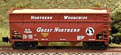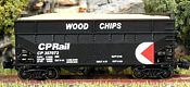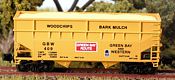 33' Offset Side Woodchip Hoppers Once considered trash, woodchips morphed into a valuable commodity during the 20th Century. Their use as pulp in paper production, bedding and fill in farm and ranch, mulches for gardening, playground surfacing, forest fire prevention, and not least as an alternate fuel source, propelled them into being a profitable industry. And of course, railroads would be responsible for transporting this modern bounty. What vehicles better than hopper cars to transport it? The lighter weight to volume of woodchips compared to coal or gravel allowed for larger capacity cars, and to achieve this, all manner of hopper extensions were conceived. From wood planking and braced plywood to welded steel and even scrap parts from old or wrecked cars were utilized to increase capacities. All woodchip hoppers feature custom woodchip loads from Hay Brothers. All cars are equipped with Full Throttle's own Bettendorf trucks, metal wheels and knuckle couplers. Click the product thumbnails for larger images.